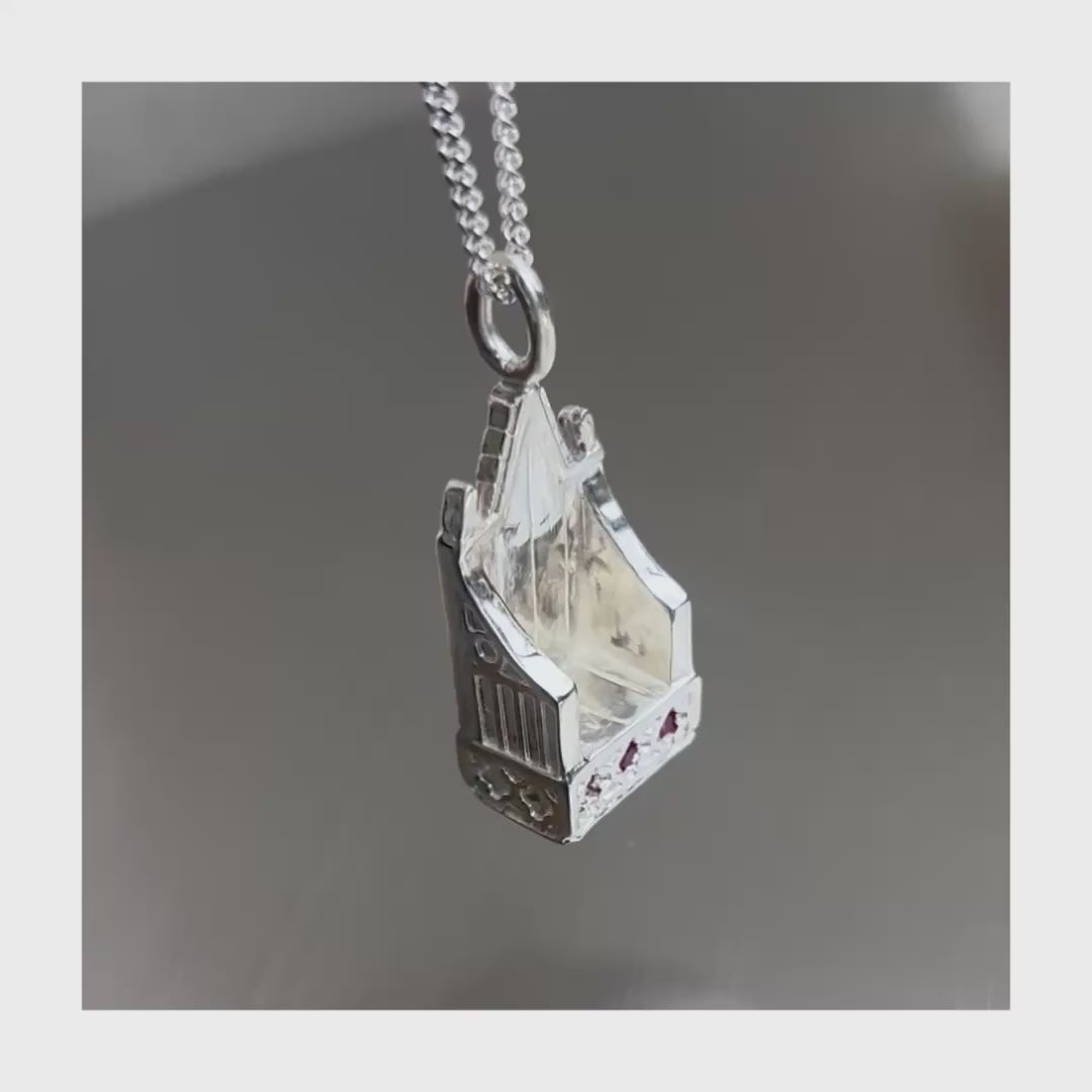 Cathedra Necklace, hand made in sterling silver set with Rubies, hung from a 42mm 925.Sterling Silver chain.
